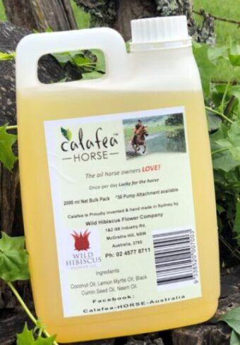 Calafea Horse kløestillende olie er en ren og helt naturlig olie til heste med stresset og tør pels, som lider af bid, stik eller Queensland kløe.